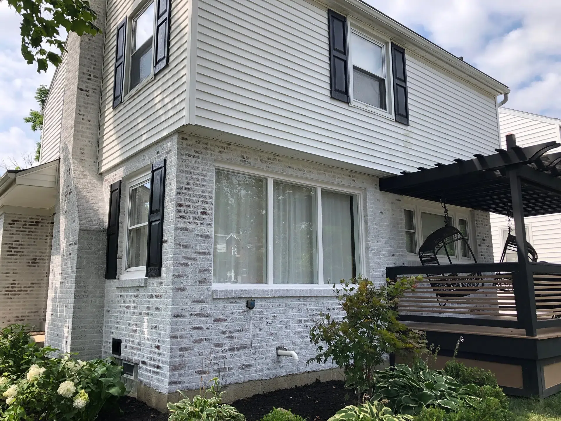 • The white limewashed brick contrasted beautifully with the existing dark deck and shutters, adding visual interest.