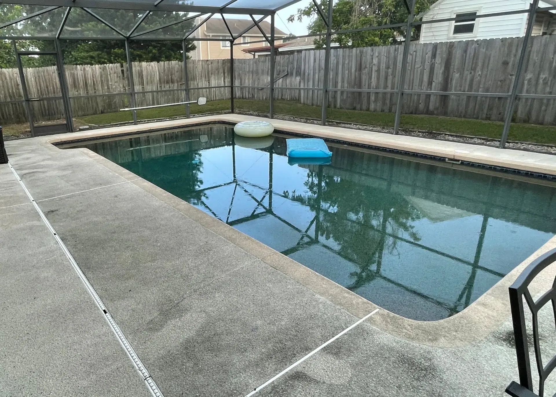 The transformation of this pool deck began with a phone call from the homeowners, who were eager to reclaim their outdoor space. Over the years, the pool area had fallen into disrepair, with cracks and mildew marring its once-inviting appearance. The homeowners felt discouraged every time they looked at the deck and worried about its safety and durability.