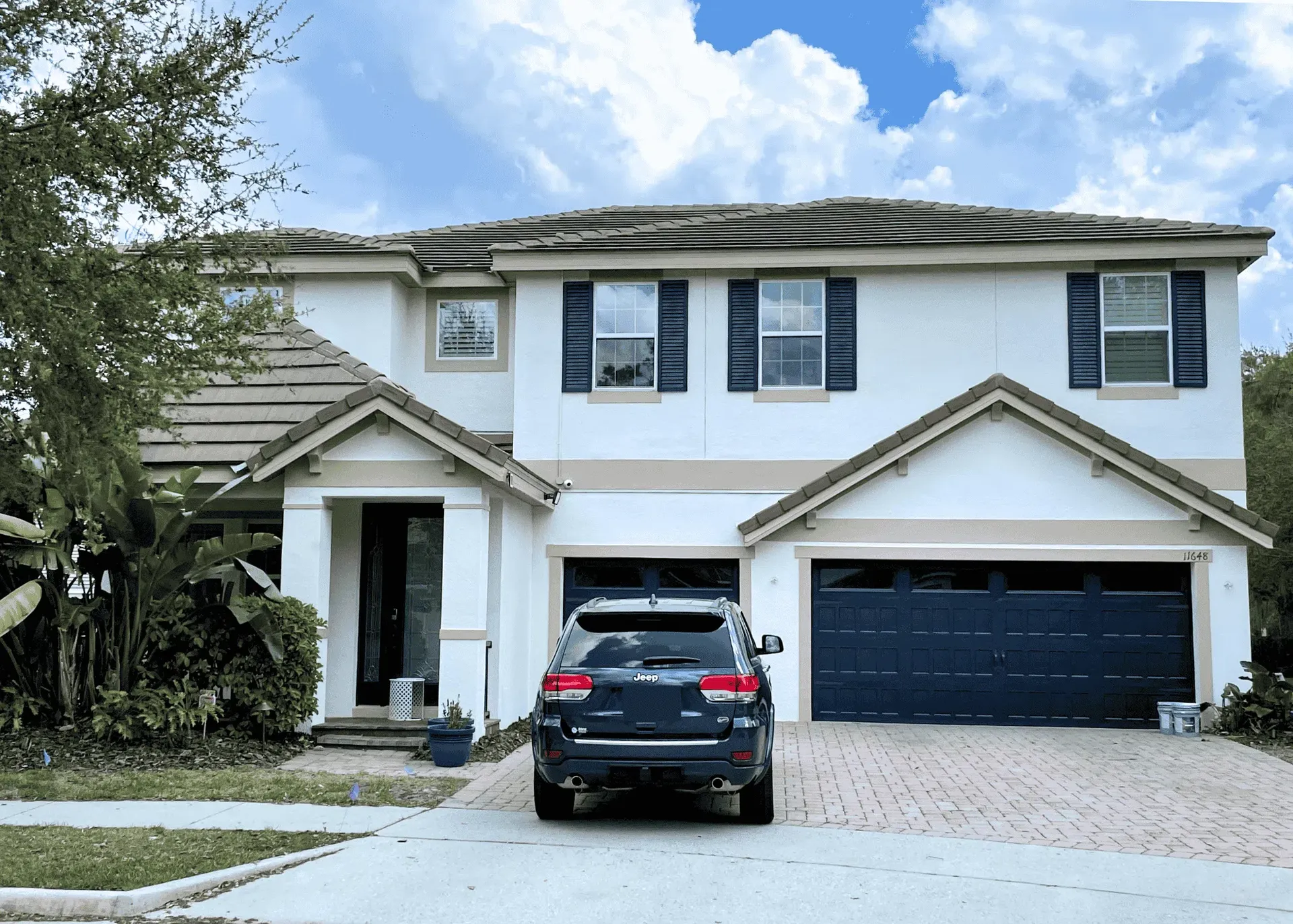 Sharper Impressions Painting recently gave a Florida home exterior a brand-new look in just four days! By sealing stucco cracks, power-washing away years of grime, and using a modern color palette featuring Sherwin Williams’ premium paints, we completely revitalized this home. The result? A bright, welcoming space with crisp whites, bold blues, and seamless trim accents that highlight the property’s unique charm.